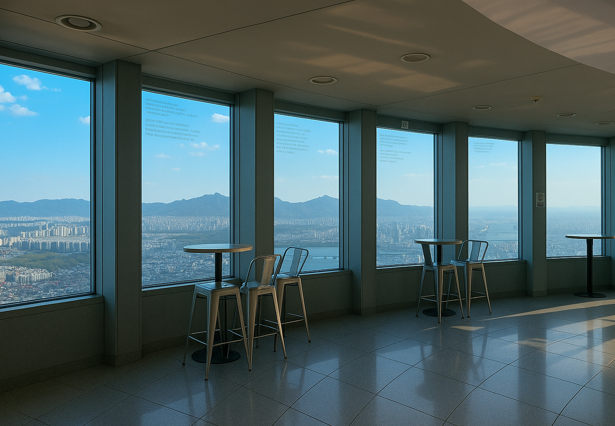 서울타워 전망대는 원형 구조로 되어 있어, 실내 어디에서든 360도로 서울 전경을 감상할 수 있습니다.